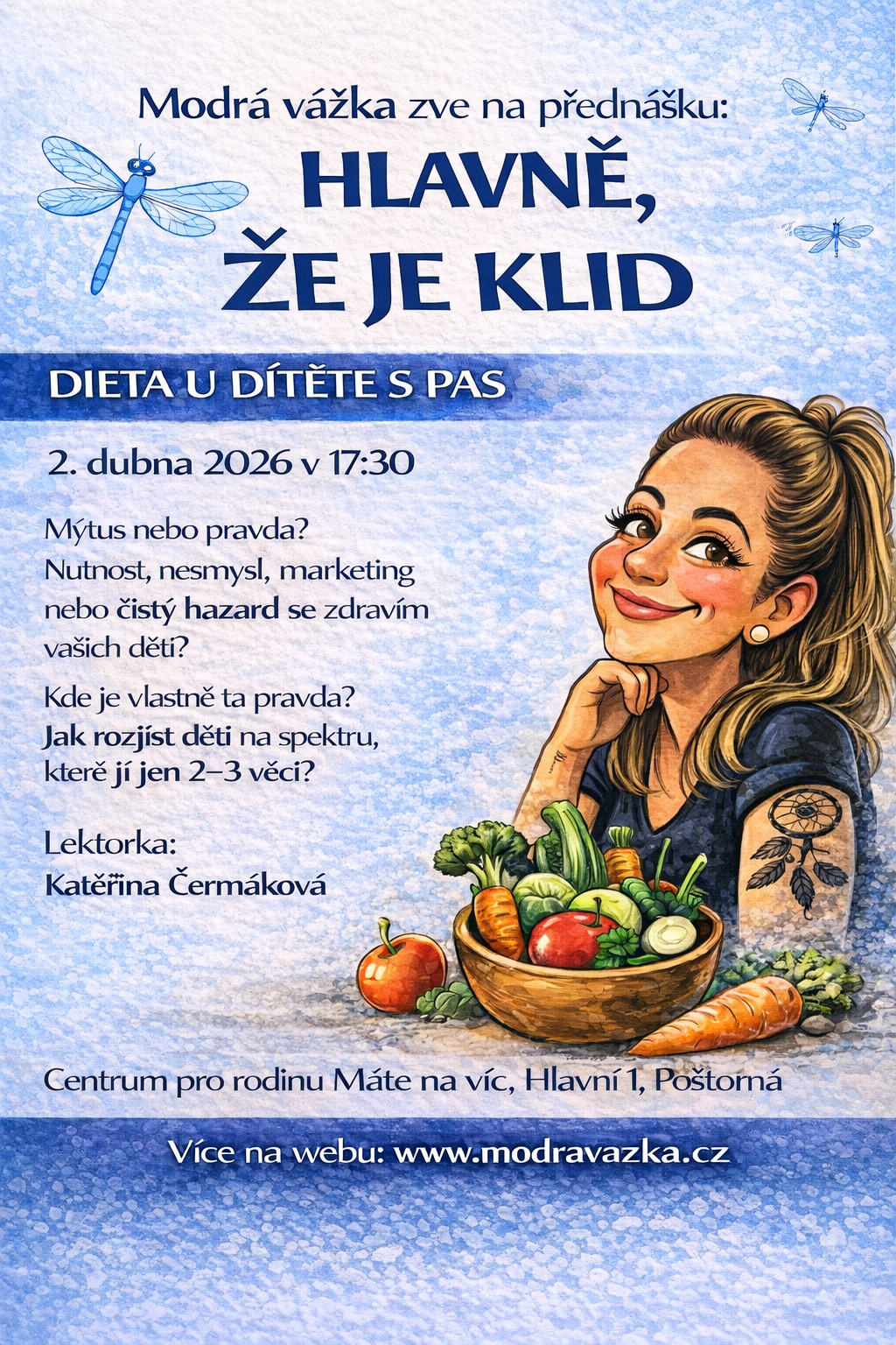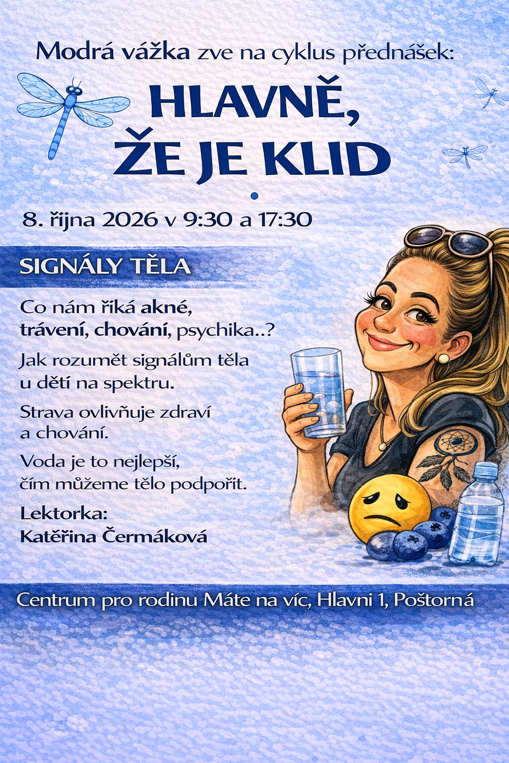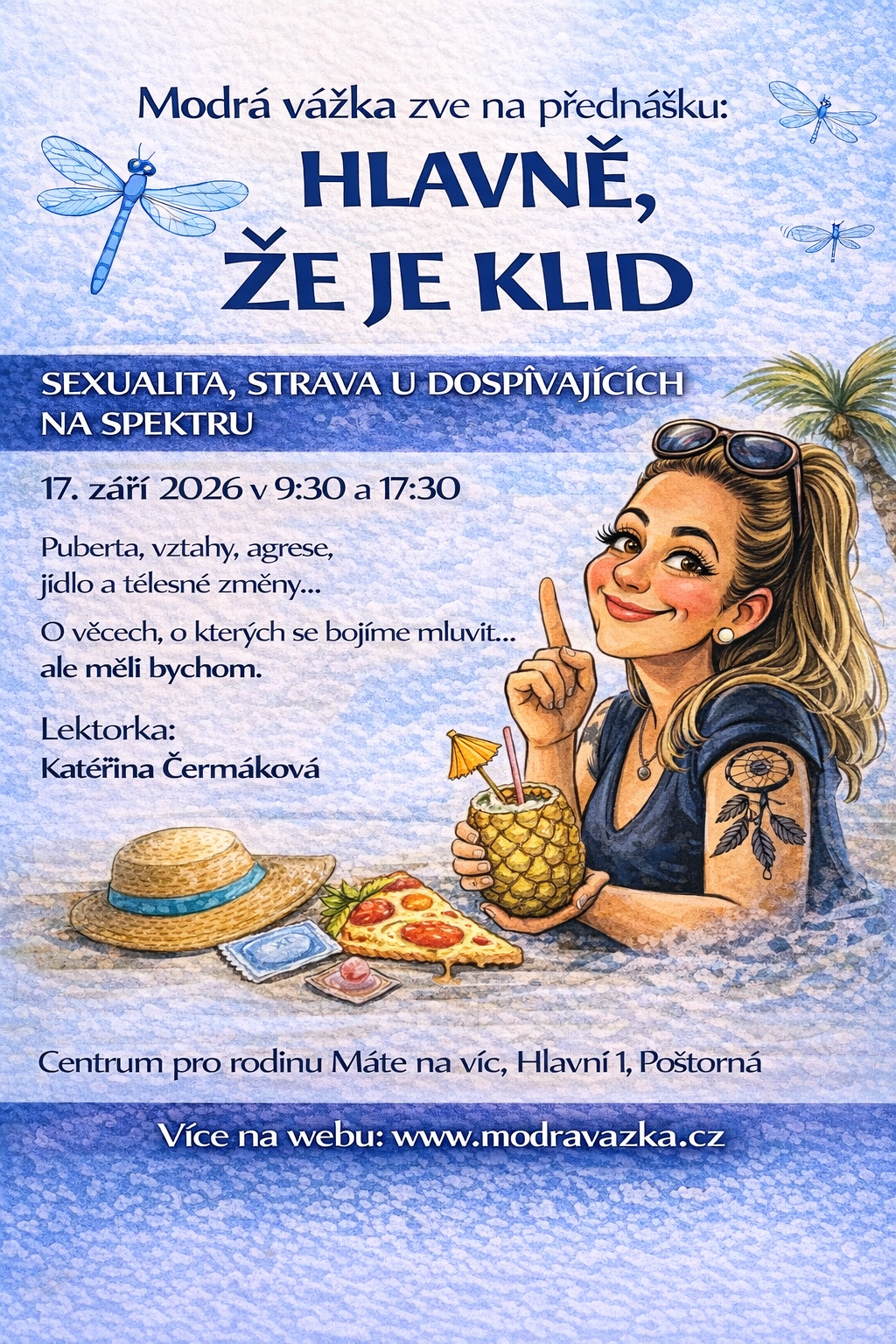 Modrá vážka zve na cyklus přednášek HLAVNĚ, ŽE JE KLID - SEXUALITA, STRAVA U DOSPÍVAJÍCH NA SPEKTRU Puberta?