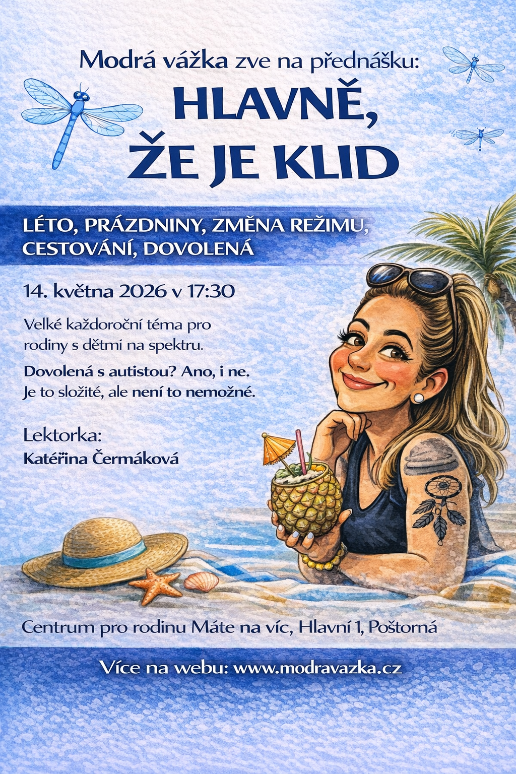 Modrá vážka zve na cyklus přednášek HLAVNĚ, ŽE JE KLID - LÉTO, PRÁZDNINY, ZMĚNA REŽIMU, CESTOVÁNÍ, DOVOLENÁ